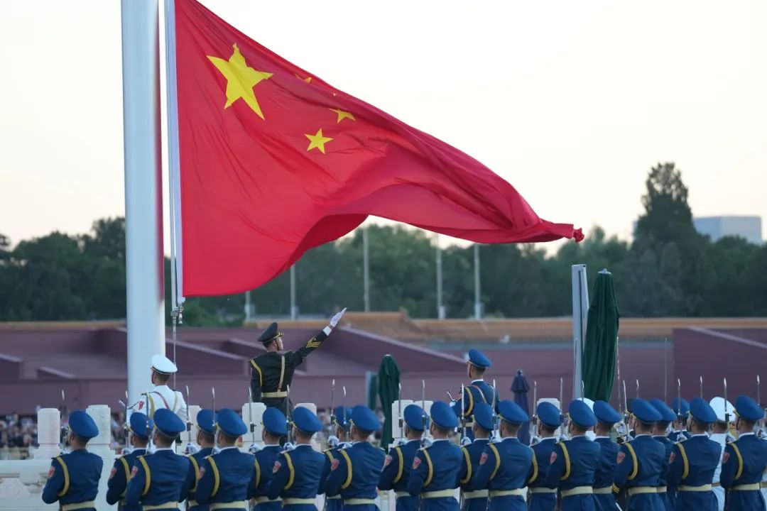 凌晨3点40分,全体观礼员工整装待发,心情无比激动。晨光熹微,北京时间6时07分,鲜艳的五星红旗在雄壮的《义勇军进行曲》中冉冉升起,迎着微风飘扬。全场庄严肃立,共同见证这神圣庄重的时刻。同学们心潮澎湃,将对祖国诚挚的祝福在国歌声中默默传颂。站在红旗下遥想中华民族百年奋斗历程,同学们深深地感受到了时代和国家赋予青年人的责任,空天报国之志更加坚定。