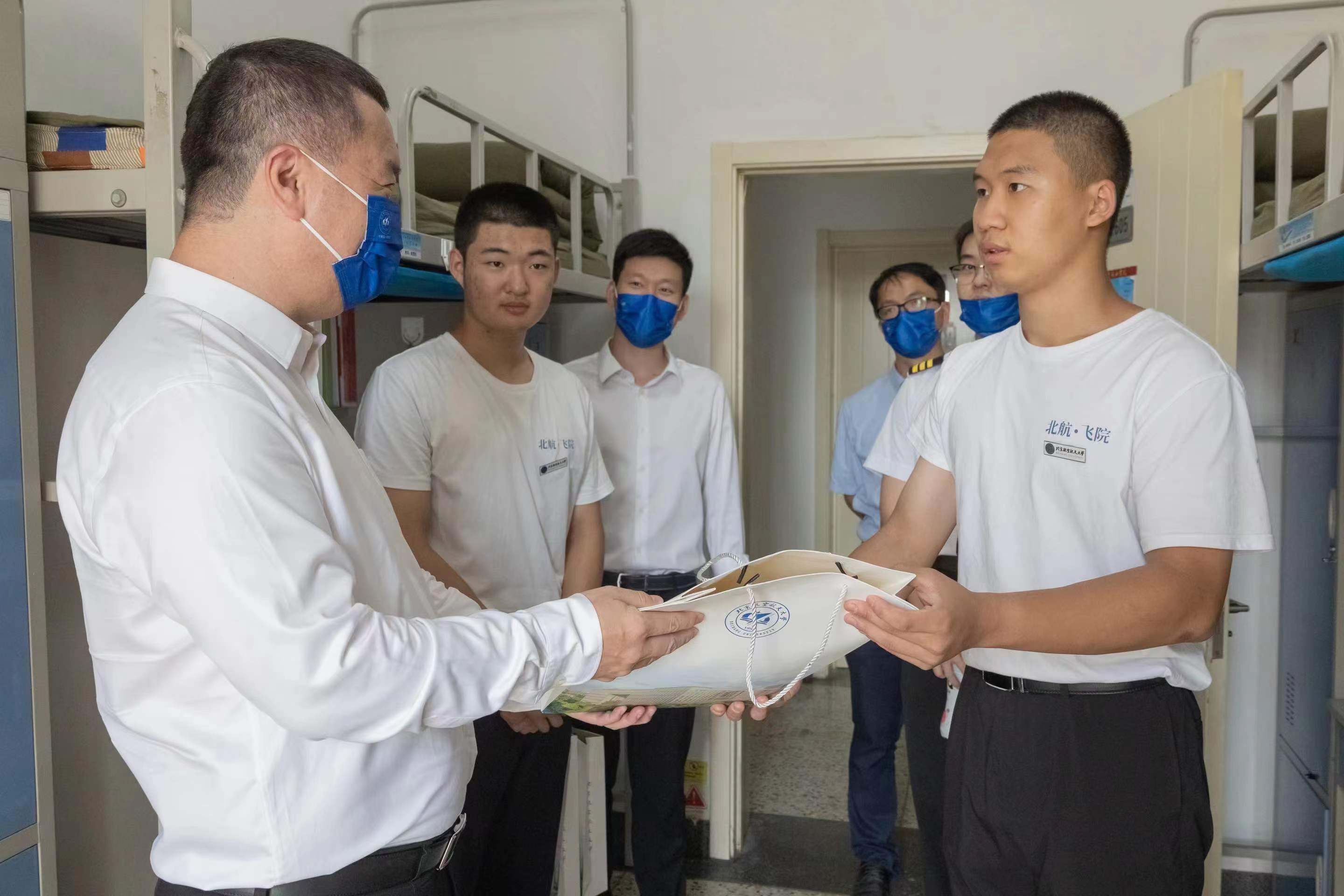 2022年9月10日上午,经理王养柱和党委副书记谷萌走访飞行技术专业新生宿舍。刚刚结束开学典礼的新同学们对自己的北航生活和学飞之路充满了期待。王养柱经理勉励同学们尽快适应老员工活,刻苦学习理论知识,锤炼过硬作风,为未来发展打下坚实基础。王养柱经理也嘱咐同学们严格遵守疫情防控要求,与同学们欢度中秋的同时,也要向家人送去中秋祝福。