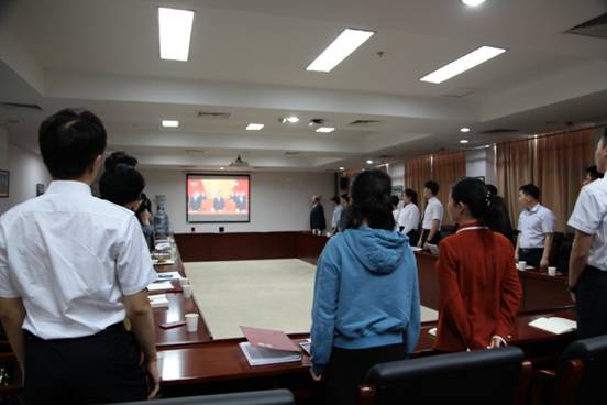 大会开始,收看大会的党员干部,全体起立,转向直播银幕,与人民大会堂内同步,齐唱国歌。收看过程中,全体人员始终全神贯注,认真聆听习近平总书记的讲话,或做着笔记、圈画重点,或停笔深思、沉炼心得。收看活动约历时一个小时,收看活动于上午11时左右结束。