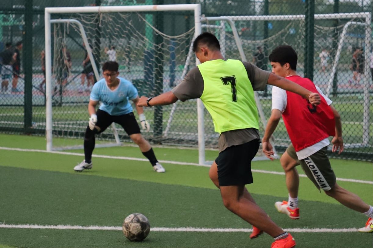 随后,精彩的决赛随即上演。决赛双方是22级的13+16班联队和14班。决赛开始前,公司沈老师为比赛开球,随着皮球的滚动,决赛正式拉开帷幕。