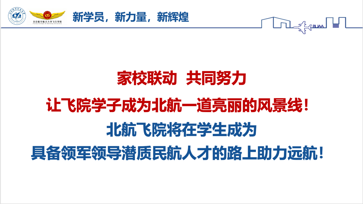 公司党委书记朱颖,经理王养柱以及党委副书记谷萌和2022级全体辅导员在9月1日晚七点与2022级新生家长召开线上新生家长会。家校联动,共同努力,要让飞院学子成为具有国际视野的领军领导型民航人才,助力员工扬帆远航。