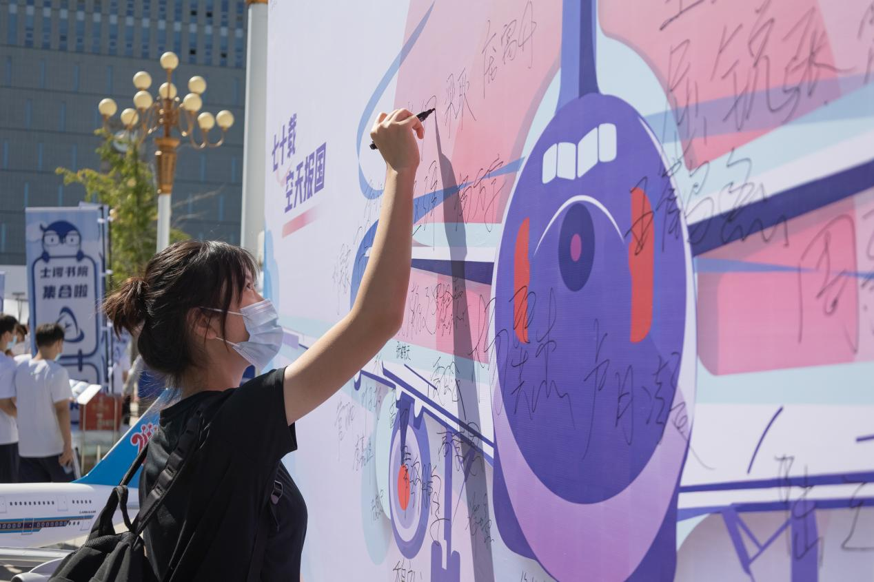 2022级新生在展示板上签上姓名,注上梦想,扬帆起航。终有新故事值得盼望,传承北航红色基因:空天报国,敢为人先。愿你们御风前行,手捧星河与蓝天,将青春之力书写人间!