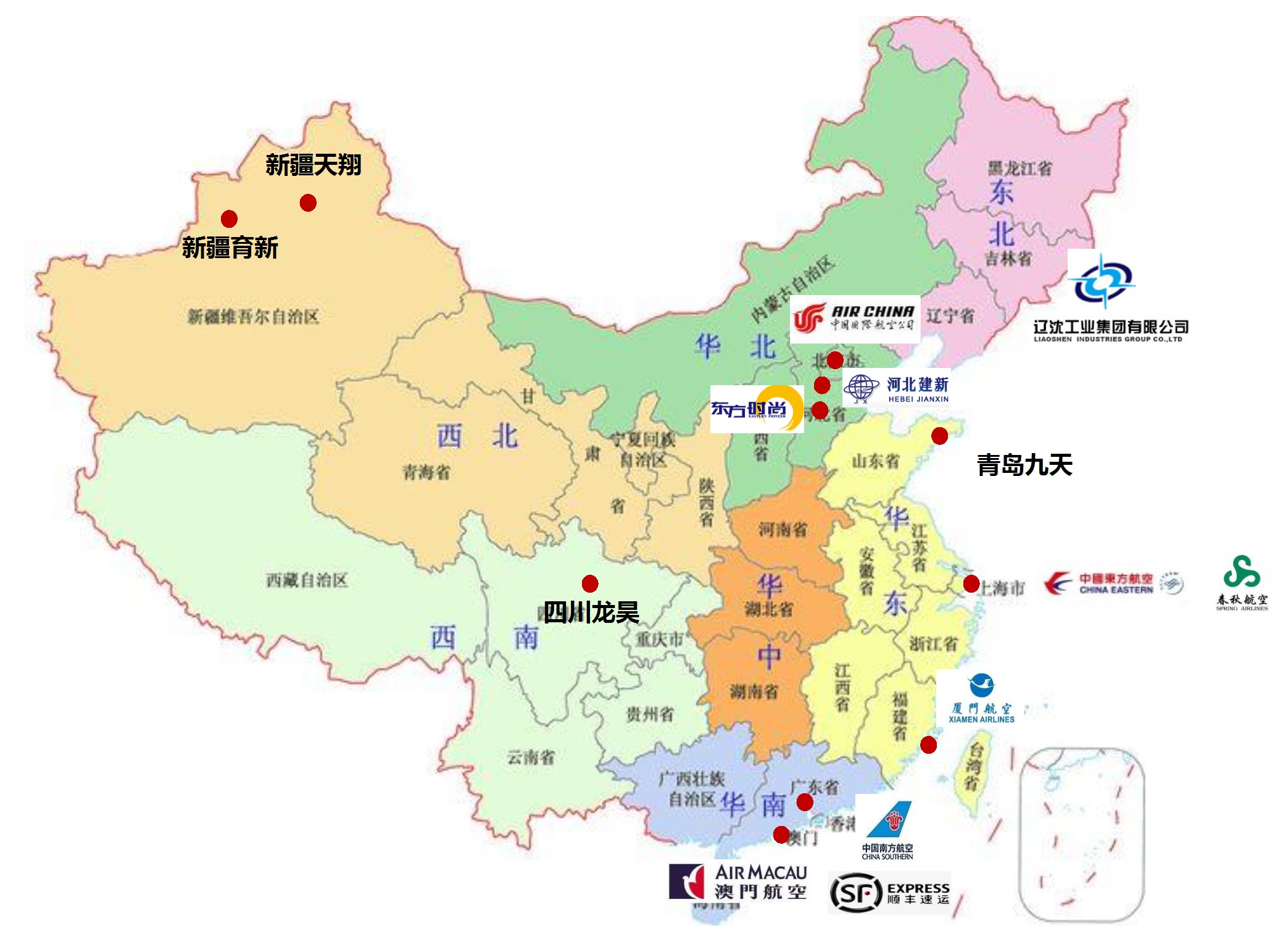 四川龙昊、新疆育新、新疆天翔、河北建新、东方时尚、湖北蔚蓝、青岛九天、梧州中航等。